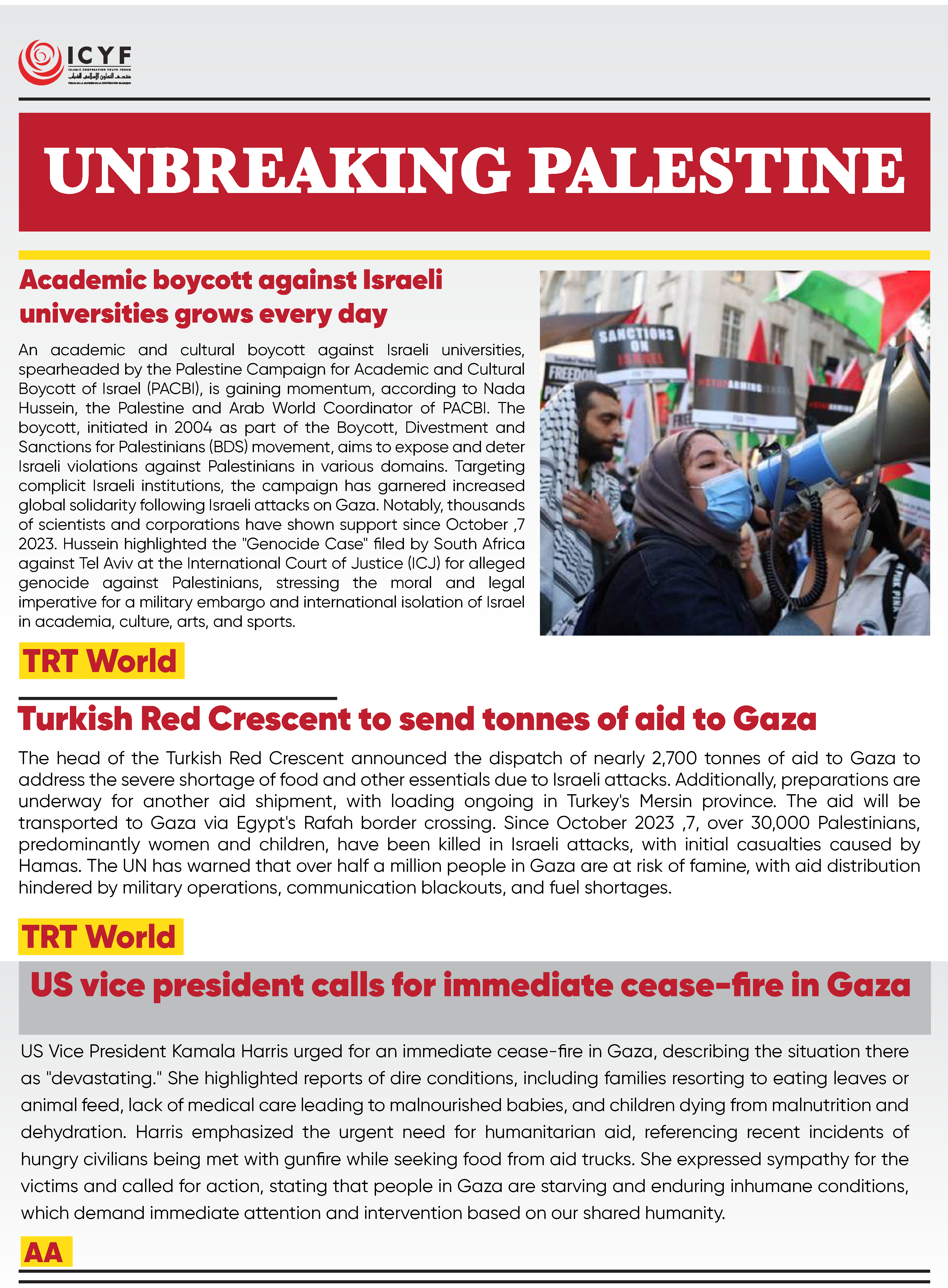 An academic and cultural boycott against Israeli universities, spearheaded by the Palestine Campaign for Academic and Cultural Boycott of Israel (PACBI), is gaining momentum, according to Nada Hussein, the Palestine and Arab World Coordinator of PACBI. The boycott, initiated in 2004 as part of the Boycott, Divestment and Sanctions for Palestinians (BDS) movement, aims to expose and deter Israeli violations against Palestinians in various domains. Targeting complicit Israeli institutions, the campaign has garnered increased global solidarity following Israeli attacks on Gaza. Notably, thousands of scientists and corporations have shown support since October 7, 2023. Hussein highlighted the “Genocide Case” filed by South Africa against Tel Aviv at the International Court of Justice (ICJ) for alleged genocide against Palestinians, stressing the moral and legal imperative for a military embargo and international isolation of Israel in academia, culture, arts, and sports.