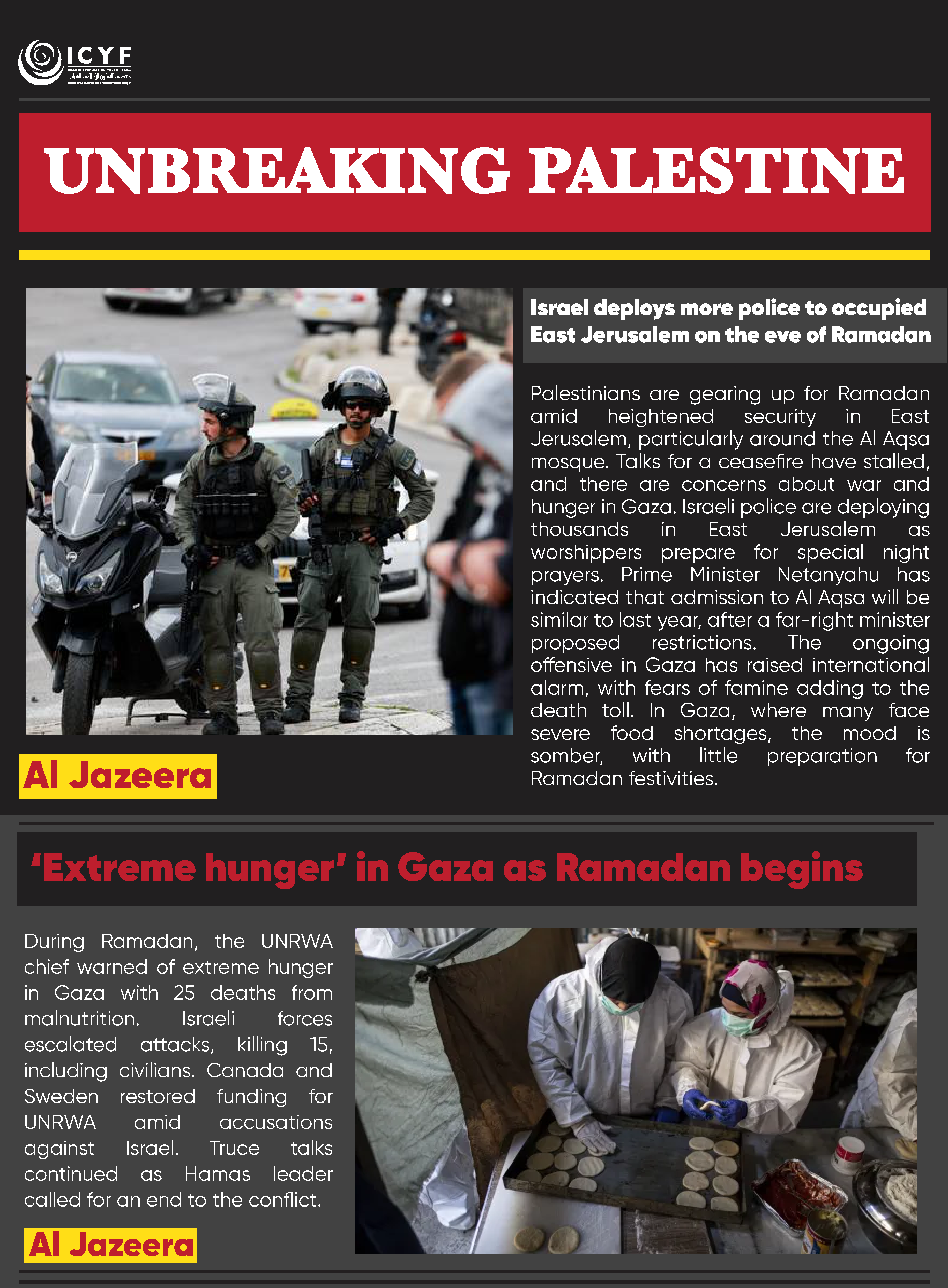 During Ramadan, the UNRWA chief warned of extreme hunger in Gaza with 25 deaths from malnutrition. Israeli forces escalated attacks, killing 15, including civilians. Canada and Sweden restored funding for UNRWA amid accusations against Israel. Truce talks continued as Hamas leader called for an end to the conflict.