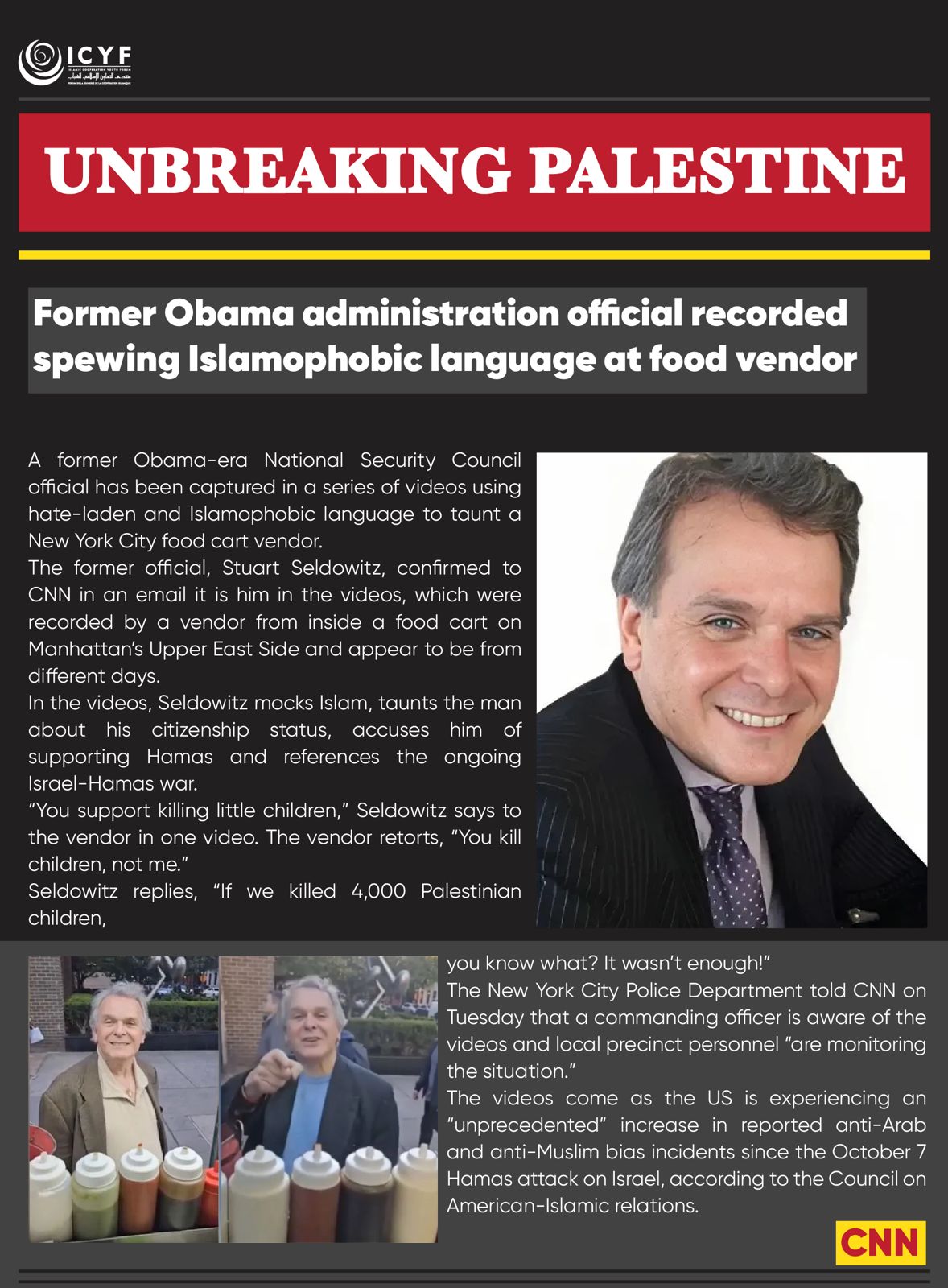 The former official, Stuart Seldowitz, confirmed to CNN in an email it is him in the videos, which were recorded by a vendor from inside a food cart on Manhattan’s Upper East Side and appear to be from different days.