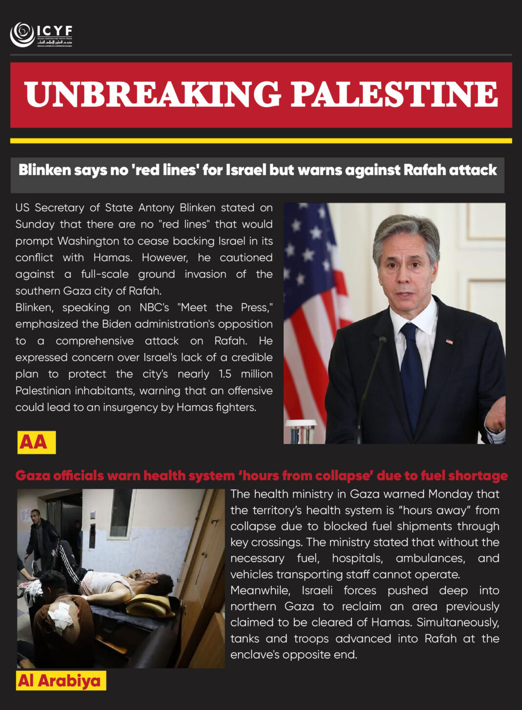 The health ministry in Gaza warned Monday that the territory’s health system is “hours away” from collapse due to blocked fuel shipments through key crossings. The ministry stated that without the necessary fuel, hospitals, ambulances, and vehicles transporting staff cannot operate. Meanwhile, Israeli forces pushed deep into northern Gaza to reclaim an area previously claimed to be cleared of Hamas. Simultaneously, tanks and troops advanced into Rafah at the enclave’s opposite end.