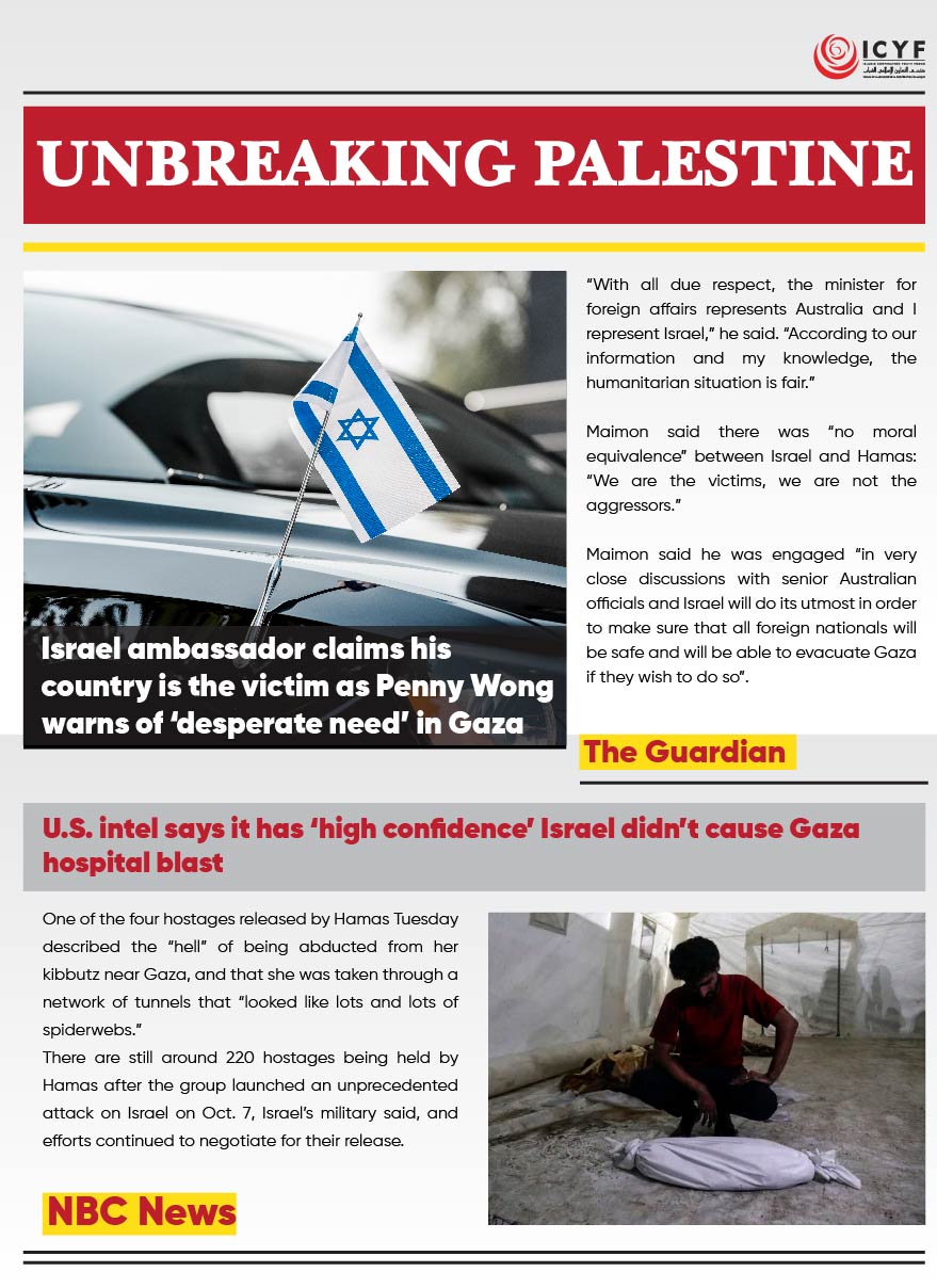 “With all due respect, the minister for foreign affairs represents Australia and I represent Israel,” he said. “According to our information and my knowledge, the humanitarian situation is fair.” Maimon said there was “no moral equivalence” between Israel and Hamas: “We are the victims, we are not the aggressors.” Maimon said he was engaged “in very close discussions with senior Australian officials and Israel will do its utmost in order to make sure that all foreign nationals will be safe and will be able to evacuate Gaza if they wish to do so”.