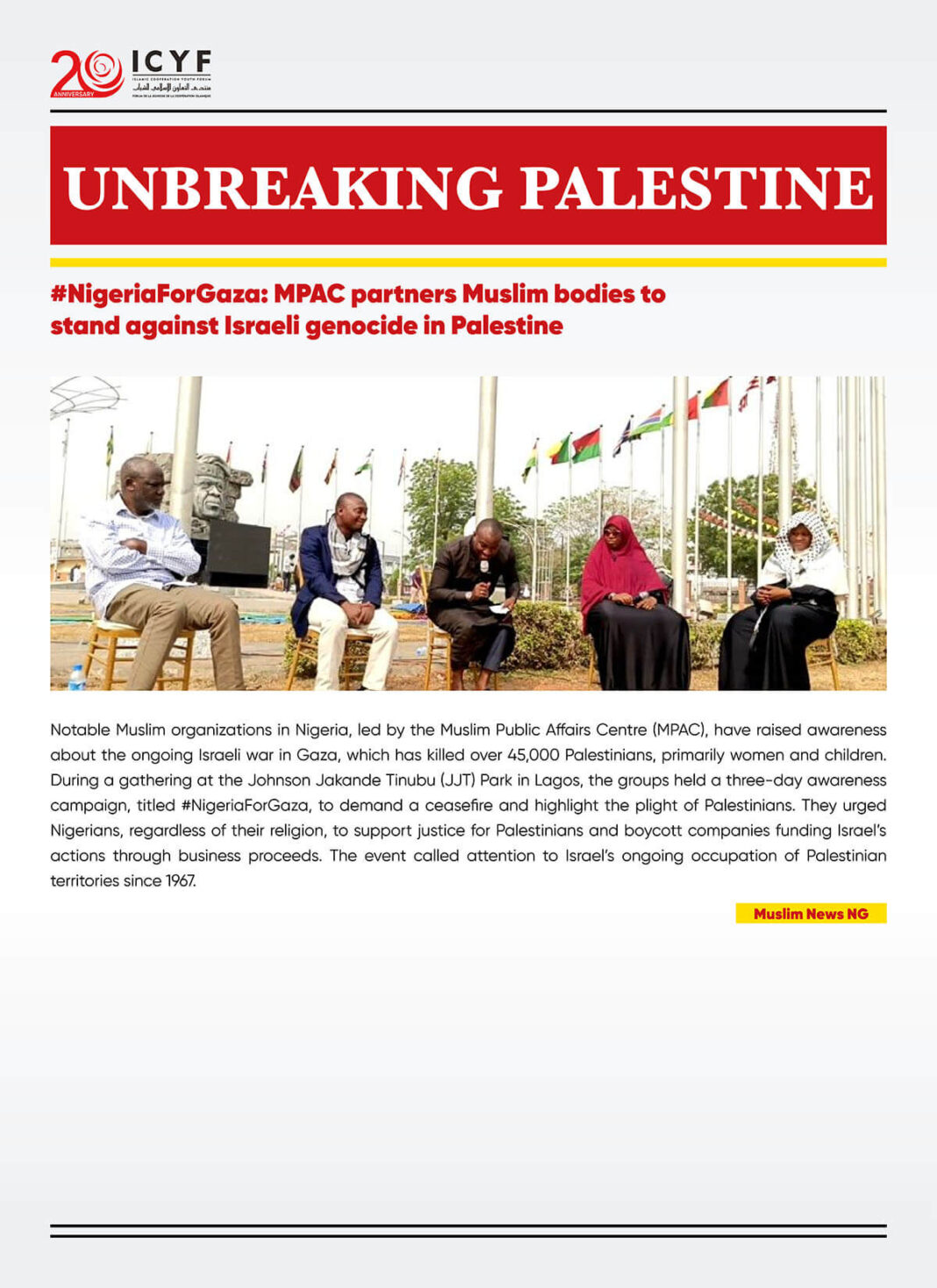 Notable Muslim organizations in Nigeria, led by the Muslim Public Affairs Centre (MPAC), have raised awareness about the ongoing Israeli war in Gaza, which has killed over 45,000 Palestinians, primarily women and children. During a gathering at the Johnson Jakande Tinubu (JJT) Park in Lagos, the groups held a three-day awareness campaign, titled #NigeriaForGaza, to demand a ceasefire and highlight the plight of Palestinians. They urged Nigerians, regardless of their religion, to support justice for Palestinians and boycott companies funding Israel’s actions through business proceeds. The event called attention to Israel’s ongoing occupation of Palestinian territories since 1967.