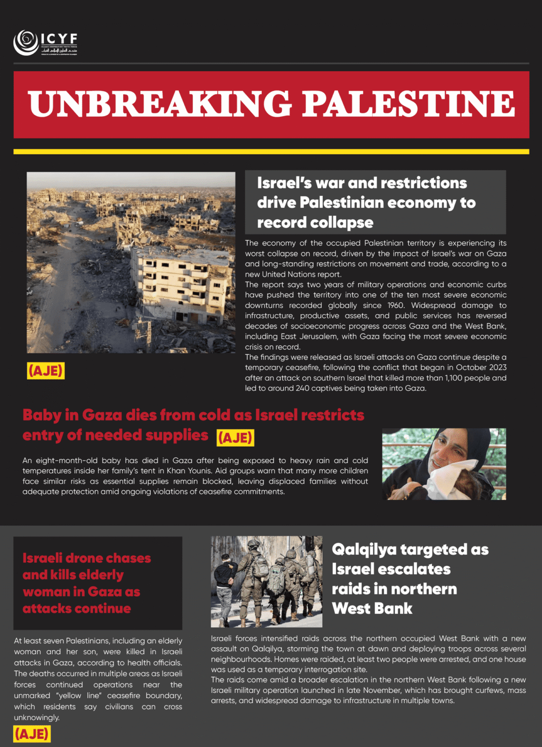 The raids come amid a broader escalation in the northern West Bank following a new Israeli military operation launched in late November, which has brought curfews, mass arrests, and widespread damage to infrastructure in multiple towns.