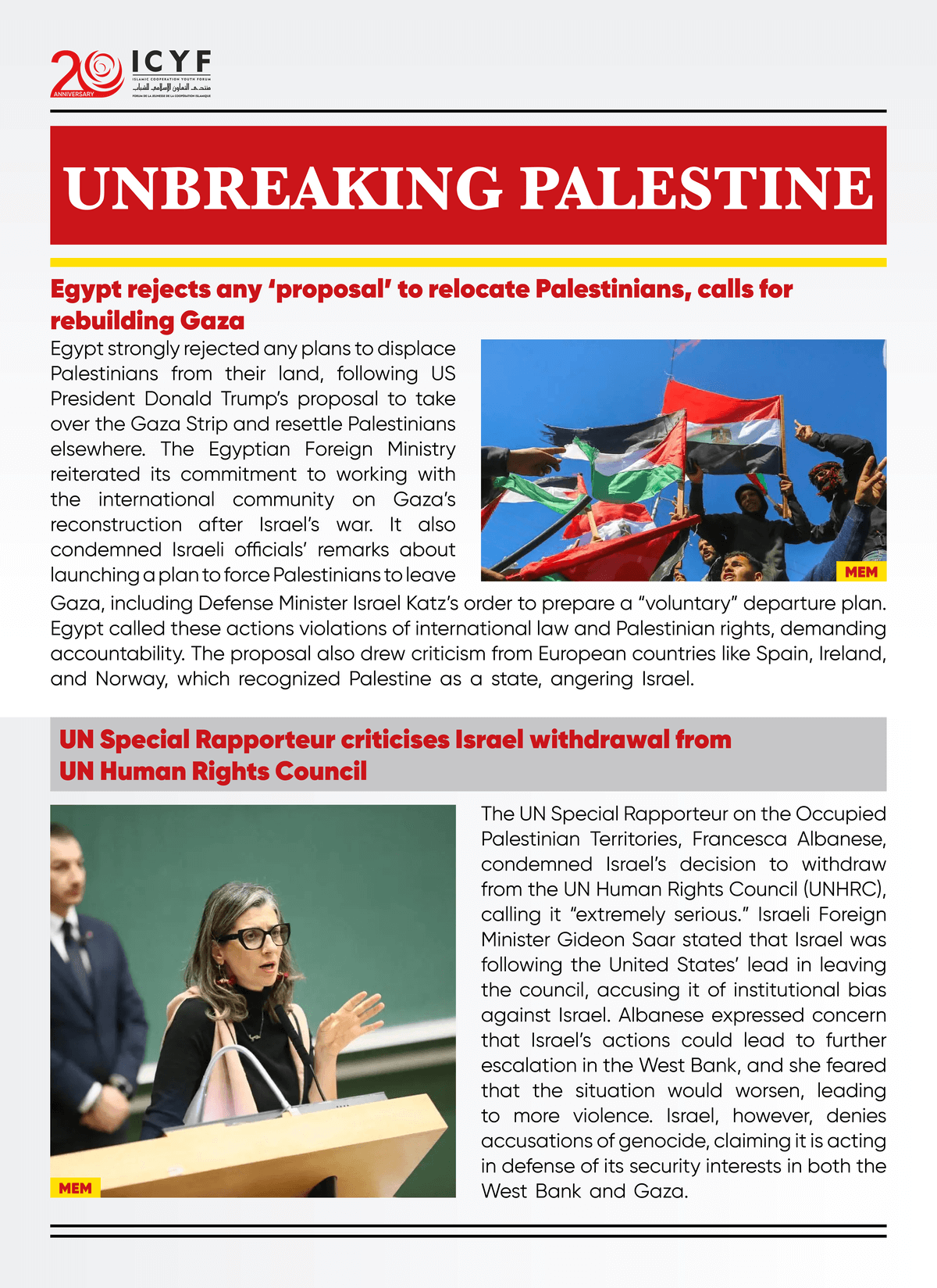 UN Special Rapporteur criticises Israel withdrawal from UN Human Rights Council (MEM)