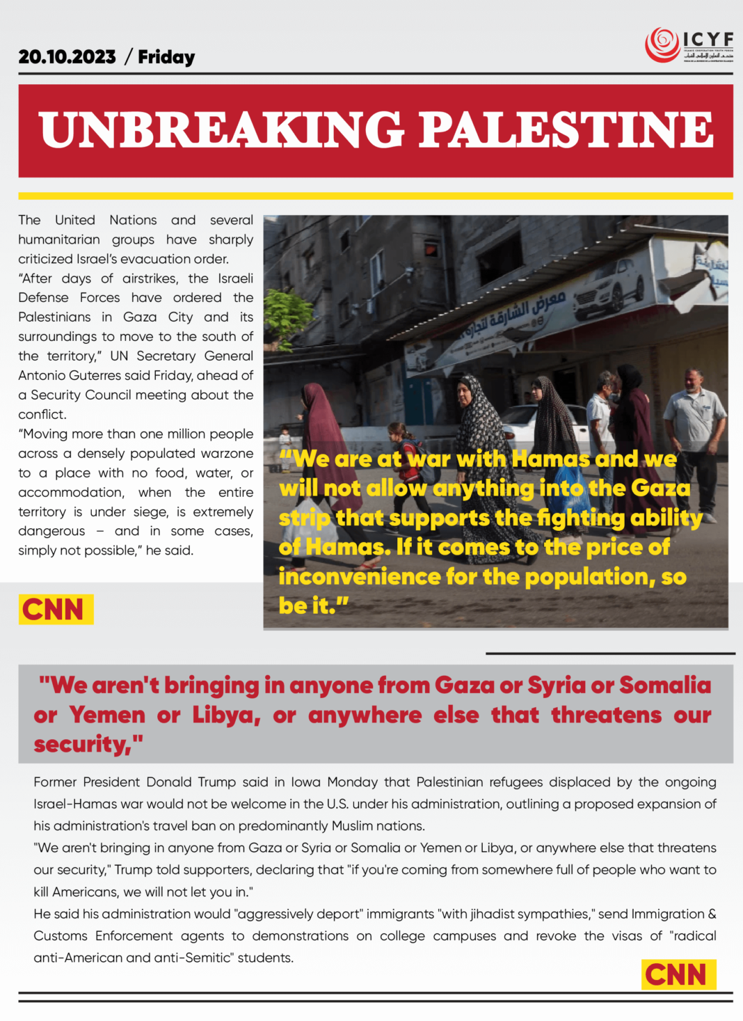 The United Nations and several humanitarian groups have sharply criticized Israel’s evacuation order. “After days of airstrikes, the Israeli Defense Forces have ordered the Palestinians in Gaza City and its surroundings to move to the south of the territory,” UN Secretary General Antonio Guterres said Friday, ahead of a Security Council meeting about